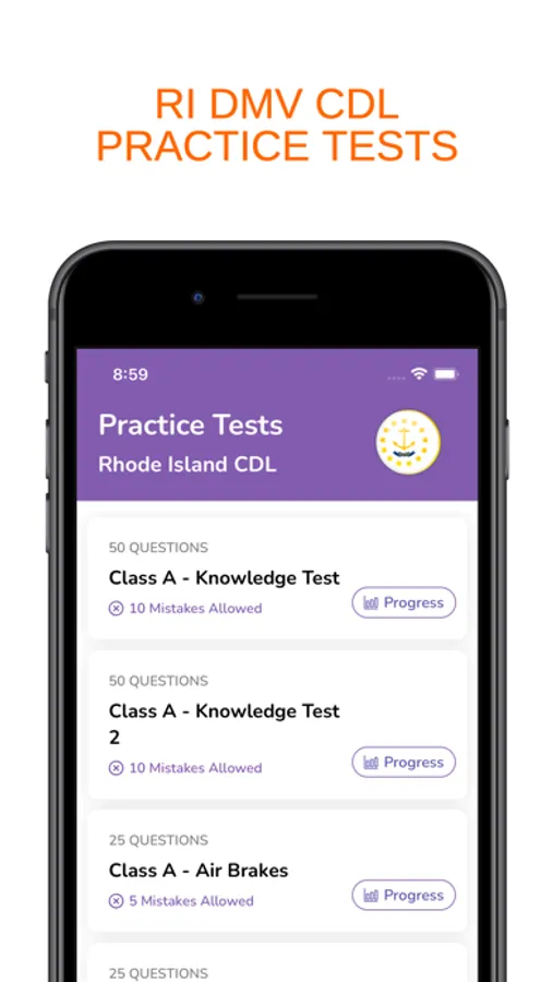 Are you applying for the Rhode Island (RI) CDL permit driver’s license test certification? Use this app to prepare, practice and clear CDL driver’s license test for Rhode Island (RI) state and get permit on the first go.
