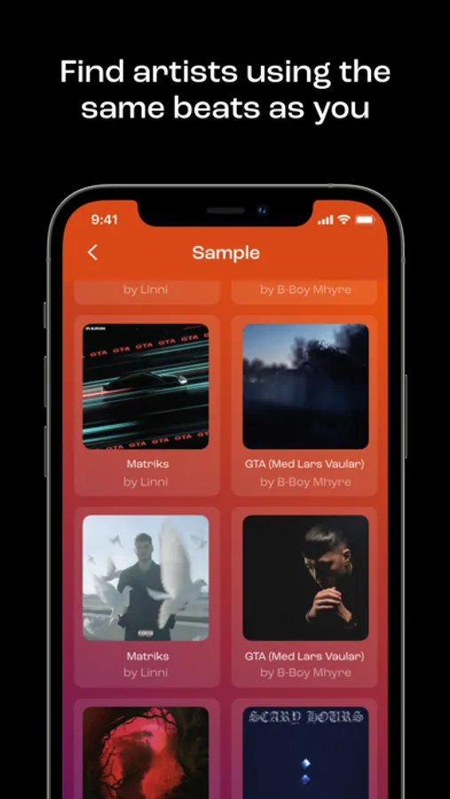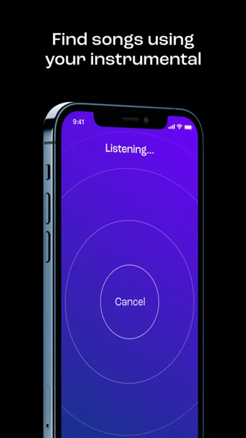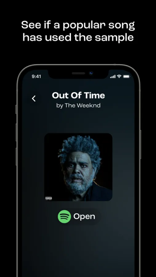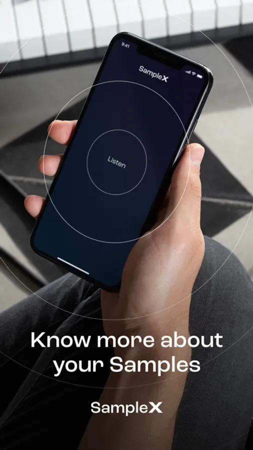 Tap the big circular button to listen to audio near you. Wait a few seconds to see the results. SampleX differs from other audio recognizers by gives more than one result. This is ideal for beat-sellers who sell instrumentals, as they can see who have made songs using their beats, and producers looking to see if a sample they have found is used in one or multiple popular songs.