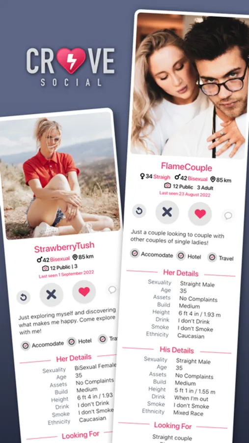 Maybe you are looking for a lover, a unicorn, a threesome, exploring a swinging lifestyle, polyamorous, just amorous or in an open relationship. No matter where you are positioned on the sensual spectrum - Crave could help make your deepest desires come true.