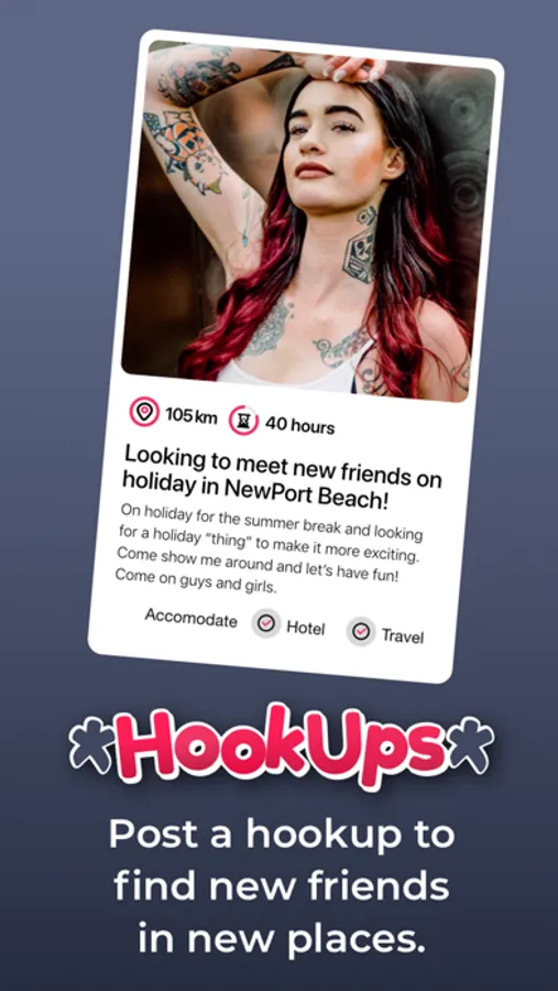 Crave will help you to find local singles and couples who are willing to meet and have some fun. Post hookups to find new friend in places you are travelling to.