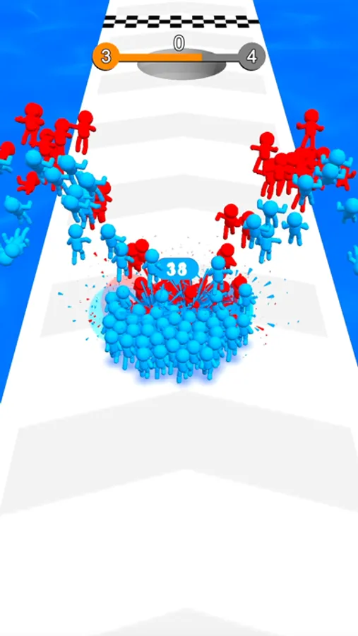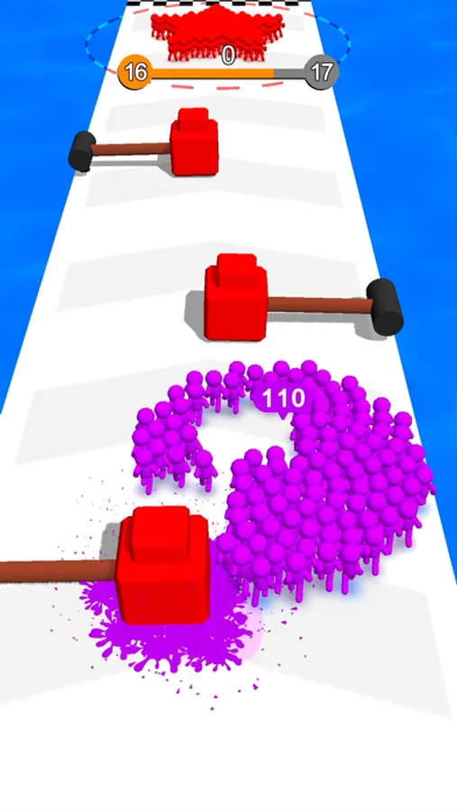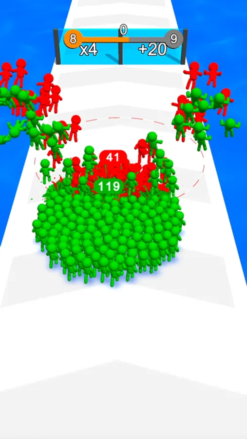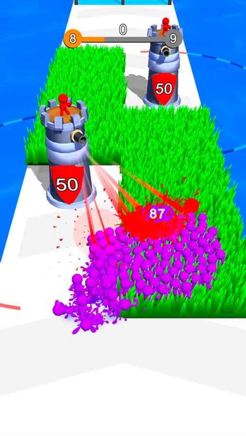 Swipe left right to move. Enter doors to change the color of your troups or multiply and attacks the enemies. Hide in the grass to escape the shooters and avoid attackers.