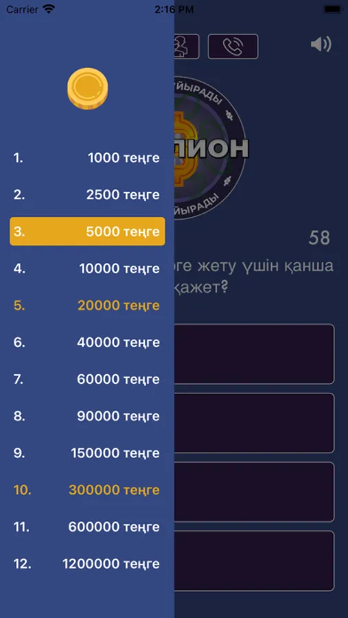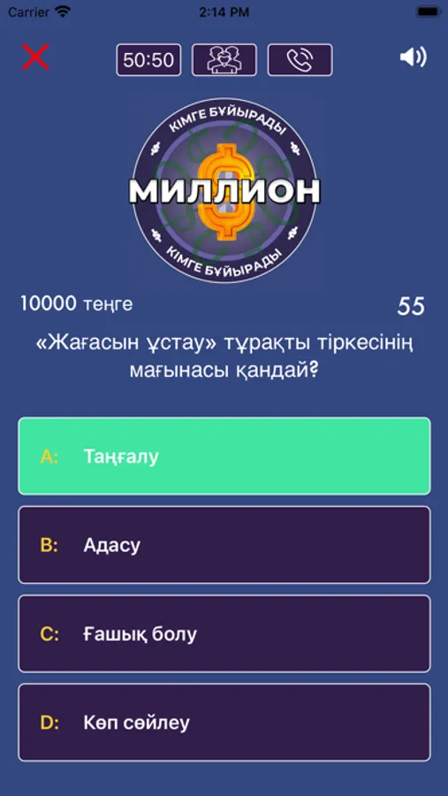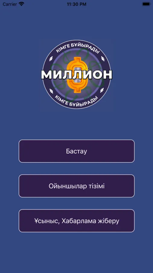 "Миллион кімге бұйырады?" бағдарламасын бұрын теледидардан көретінбіз. Енді міне ұялы телефоныңызда ойнауға болады. Атап айтсақ, бірнеше сұрақтар бар. Ойын ұнаса, бағалауды ұмытпаңыз!