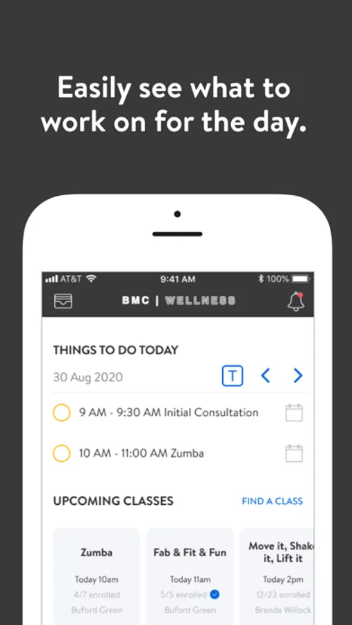 With the BMC Wellness App, you can start tracking your workouts and meals, measuring results, and achieving your fitness goals, all with the help of your personal trainer.