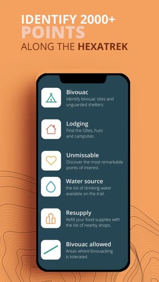 Find easily the list of all the water points (springs, fountains, drinking water) and the places of provisioning (supermarket, grocery shop, local producers.)