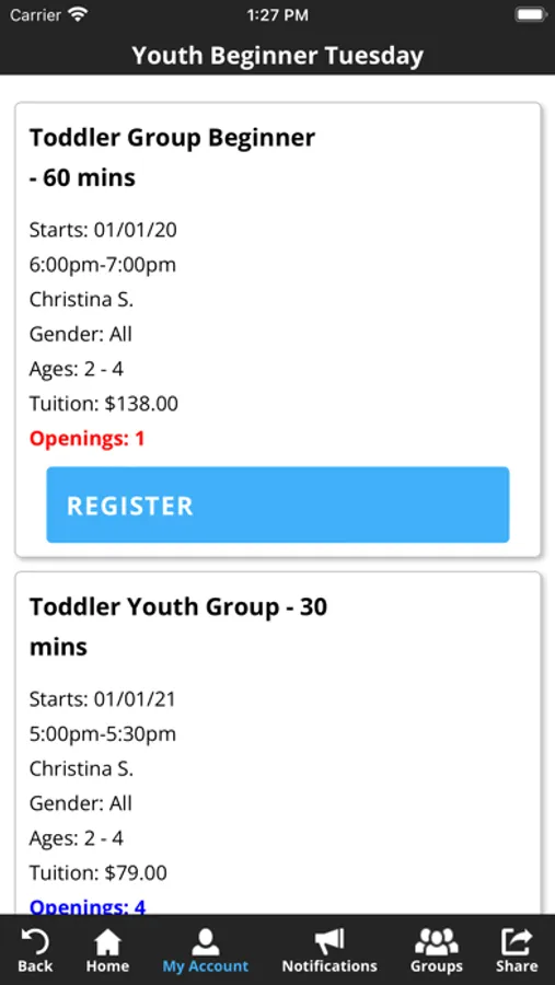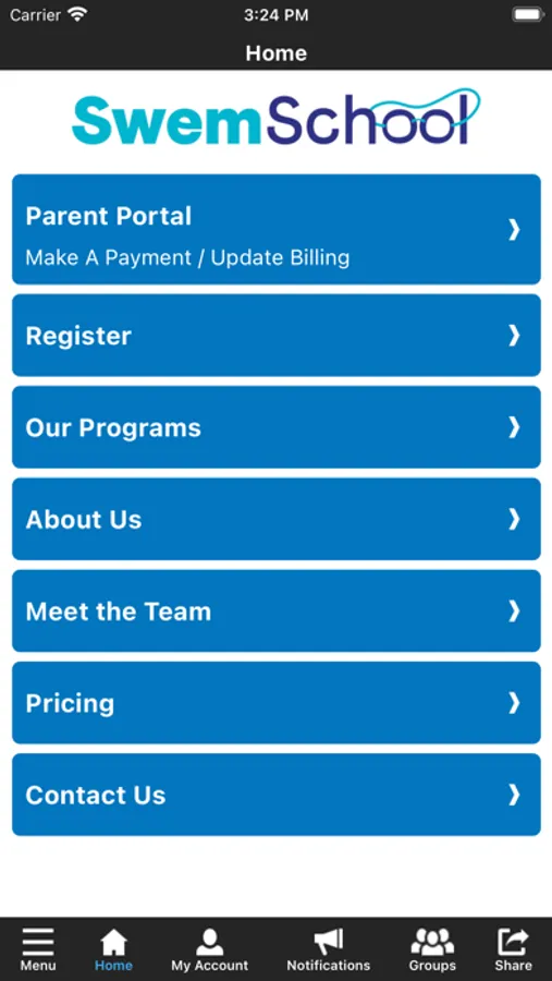 The Swem School app allows you to manage your account with ease, register for classes, and clinics. You'll also receive important notifications about class changes, closings, registration openings, special announcements, and upcoming events.
