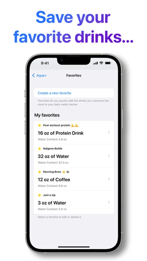 - Track over 15 drink types and Aqua will calculate hydration levels for each