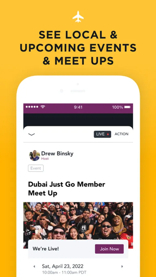 The idea for this JUST GO community was sparked after Drew hosted 30+ meet-ups around the world, in cities like Istanbul, New York, Dubai and Bangkok. Every event was full of energy, smiles and positive vibes, so Drew thought, why not turn this into something bigger?
