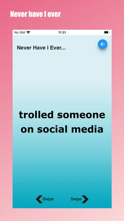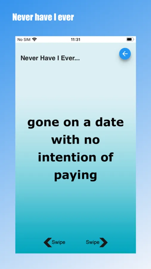 Never Have I Ever: One person reads out a statement. If any of the players have done it, they must carry out a forfeit predetermined before the game.
