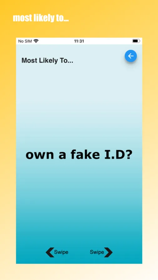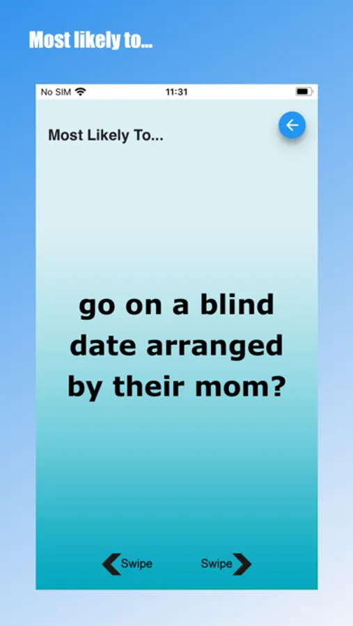 Most Likely To: Take it in turns to read a statement. On the count of 3, every player points to the person they think is most likely to do the thing in the statement. The person with the most votes must do a predetermined forfeit.