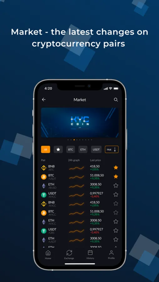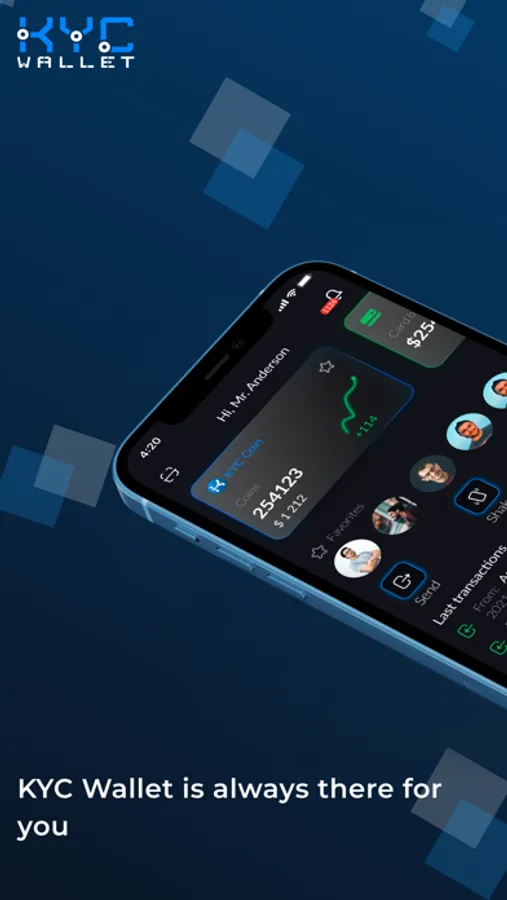 KYC Coin Wallet is a simple but convenient and feature-rich mobile crypto currency wallet without commissions. Each user can send funds to their contacts, add notes, buy and sell popular cryptocurrencies. With KYC Wallet, you can send cryptocurrencies to anyone from anywhere and in any direction.