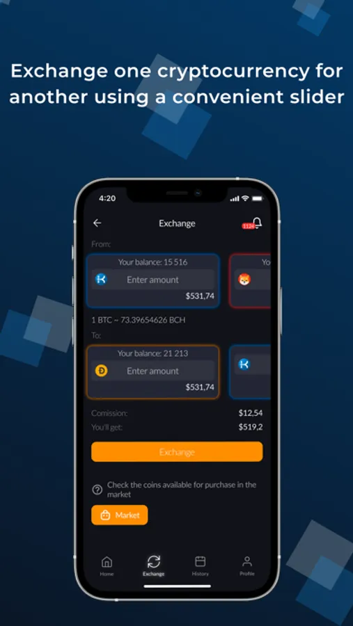 Exchange - exchange one cryptocurrency for another using a convenient slider. Choose popular trading pairs, buy and sell cryptocurrencies in a few seconds.