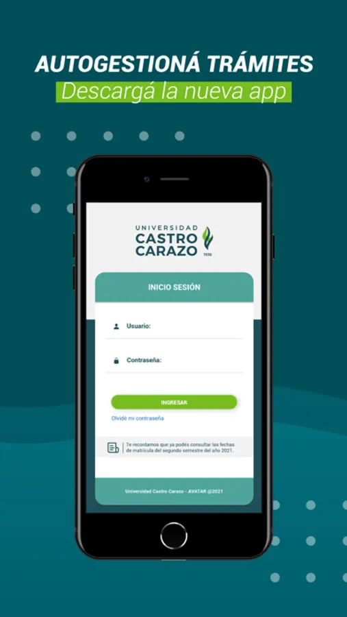 Mediante esta aplicación la comunidad estudiantil de la Universidad Castro Carazo, podrá realizar todo el proceso de matrícula incluido el pago de sus cursos, y acceder a los servicios de: récord académico, estados de cuenta, solicitud de cambios y retiros de materia, entre otros.