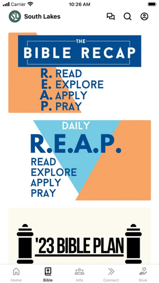 The official South Lakes Church App connects you to a variety of resources, including sermons, music, event information and more.