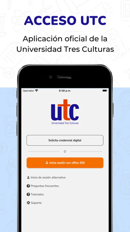 Bienvenido a Acceso UTC, aplicación oficial de la Universidad Tres Culturas, la cual permitirá a los estudiantes, docentes y administrativos de la UTC identificarse como tal en cualquier lugar, además de contar con las siguientes funcionalidades: