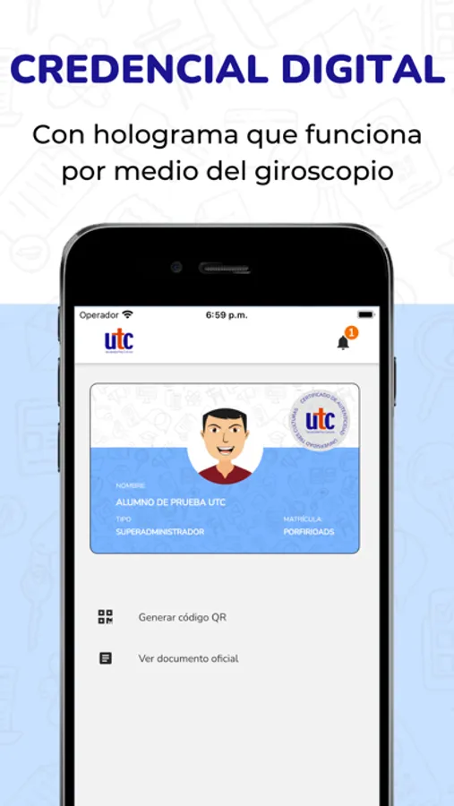 - Credencial digital con holograma que funciona por medio del giroscopio.