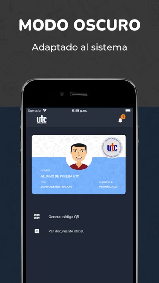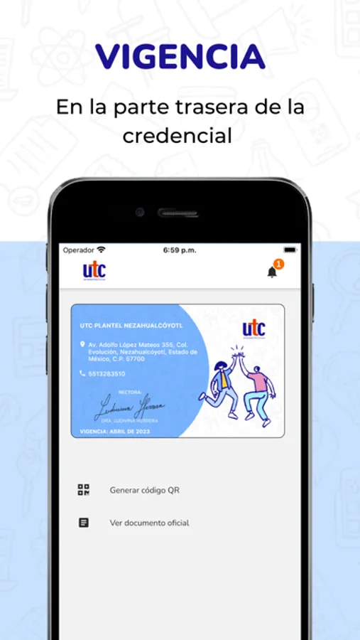 - Generador de códigos QR para validar la credencial por medio de la aplicación Escáner UTC.