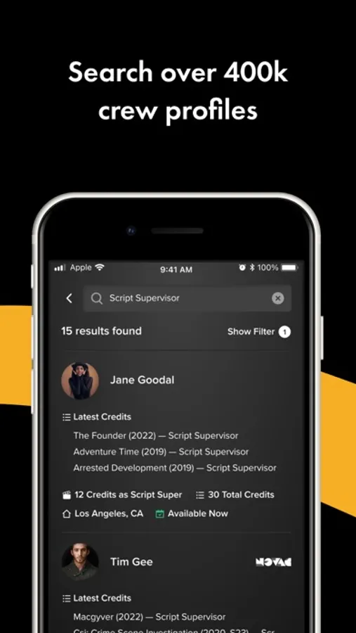 • Search over 1 million profiles by role and location to crew up