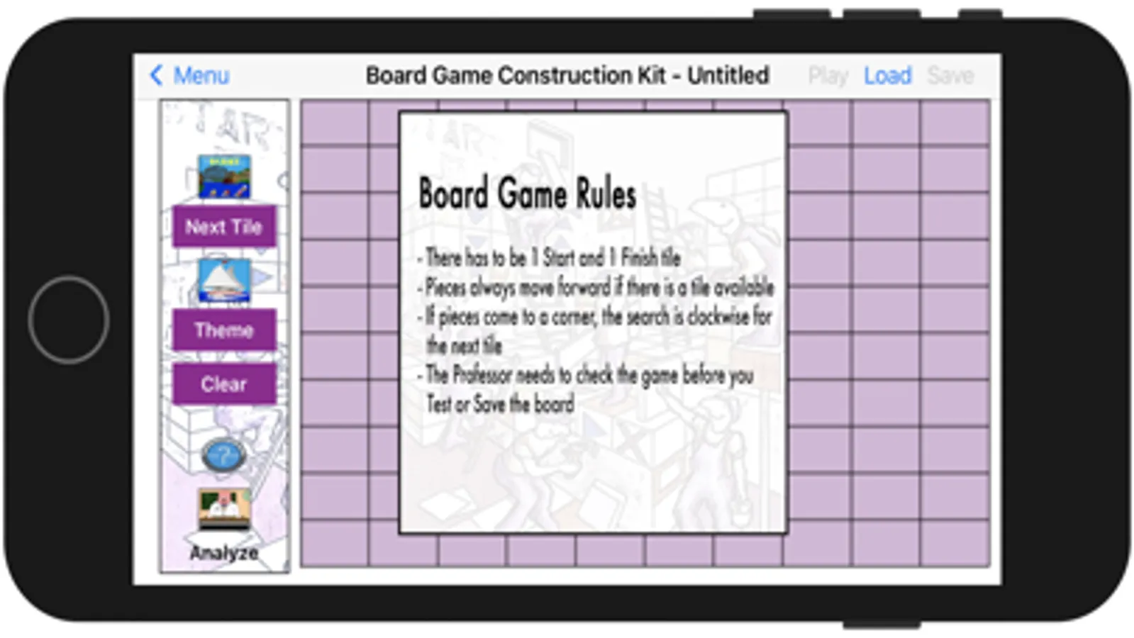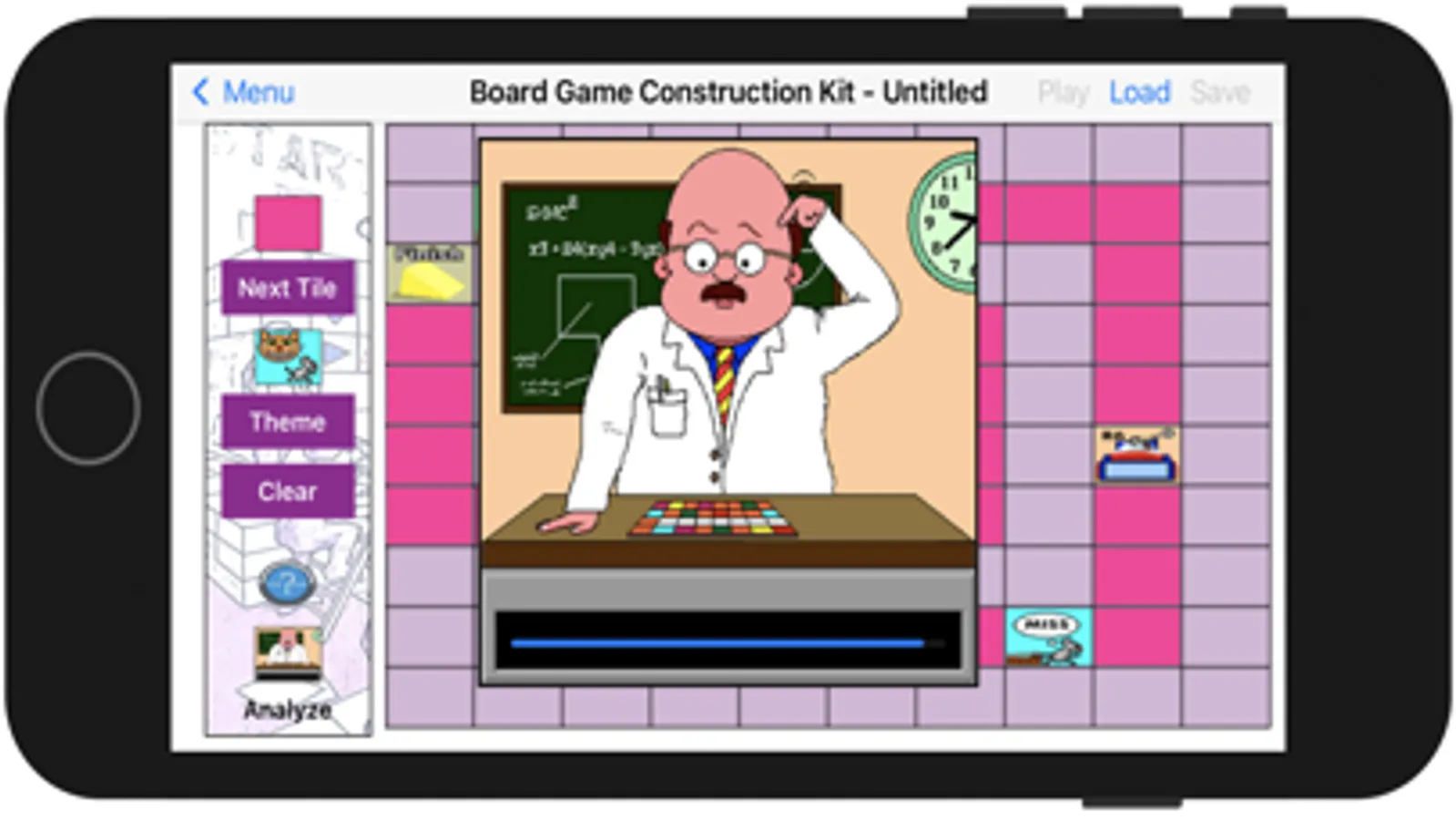 Board Game Construction Kit is simple yet rewarding for young children to get involved in the creative process and develop early problem solving skills while designing their own games. The Professor will analyse your creation and tell you if you have created a successful game that you can save.