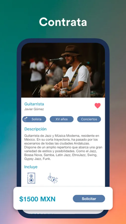 The Muzigzag® tiene características increíbles, podrás ver servicios de manera independiente y tener control sobre tus reservaciones y contrataciones. Si eres de los que se harta de buscar puedes encontrar servicios por disponibilidad. Recuerda que también puedes resolver tus dudas y afinar detalles con el artista antes de cada servicio.