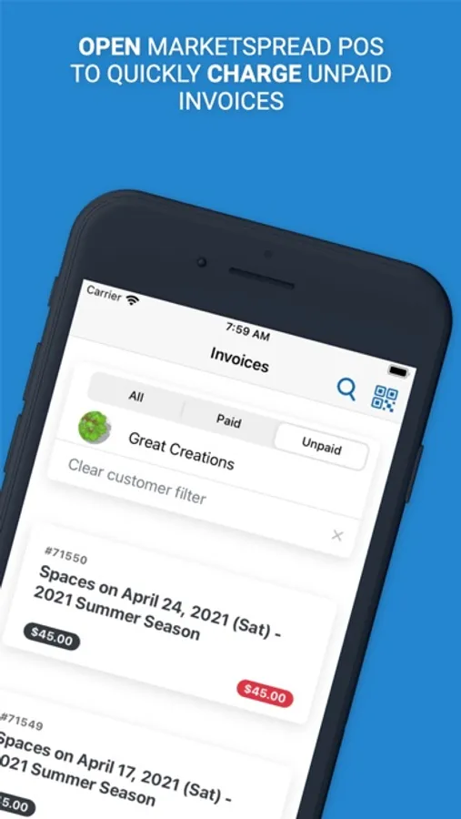 Marketspread Pass gives market managers the ability to verify that a vendor is approved to attend the current event.