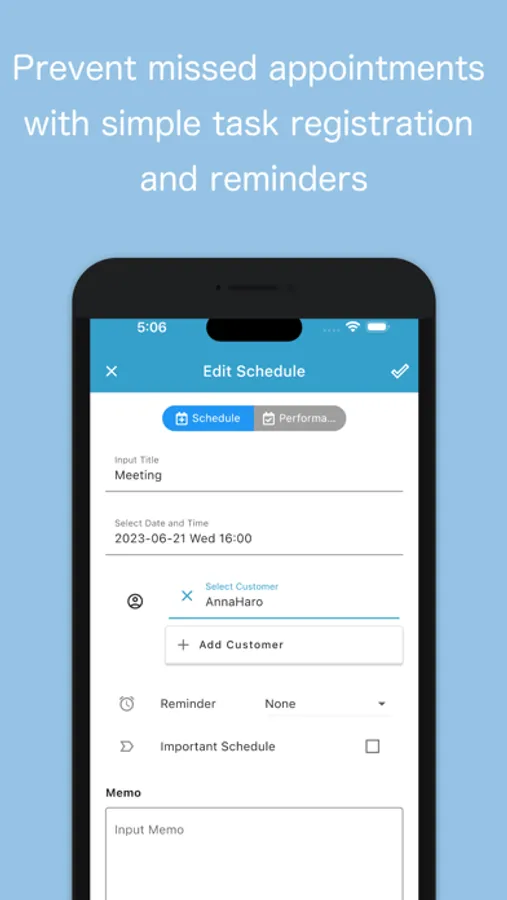 "Simple schedule management with "Eitasu". Easily manage your customers, tasks, and history.