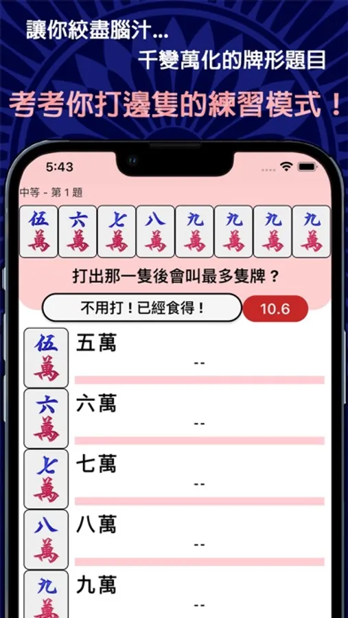 .「練習模式」:分四級難度的練習模式,無窮無盡的題目可讓用家可在休閒時訓練一番