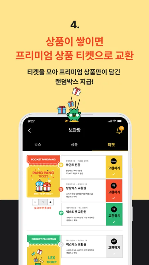 랜덤박스로 다양한 상품을 만나고 티켓으로도 교환하세요.