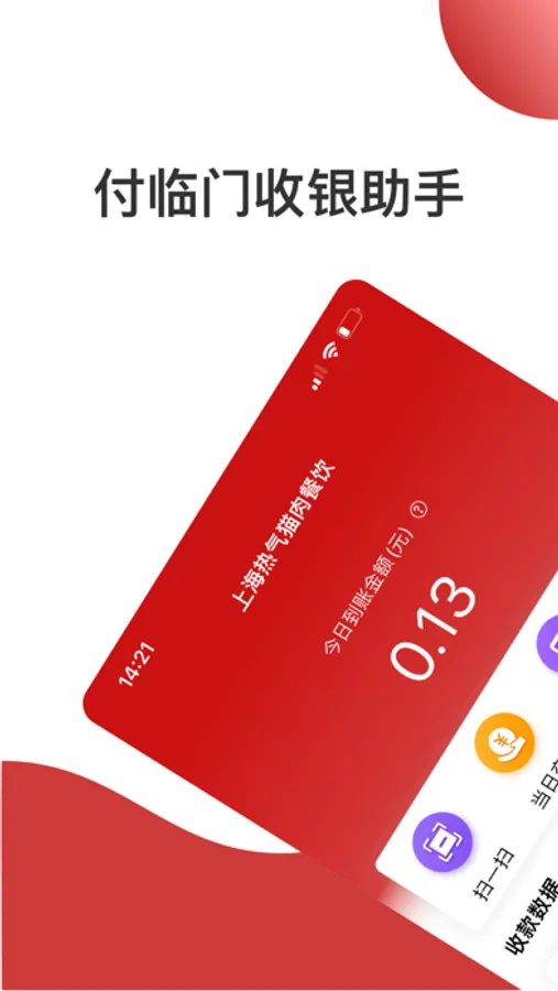 付临门收银助手,是一款针对商户侧日常经营查询设计的产品,主要用于商户日常交易、对账查询、交易数据分析、商户信息查询及终端信息查询等。为商户提供便捷的日常经营查询工具。