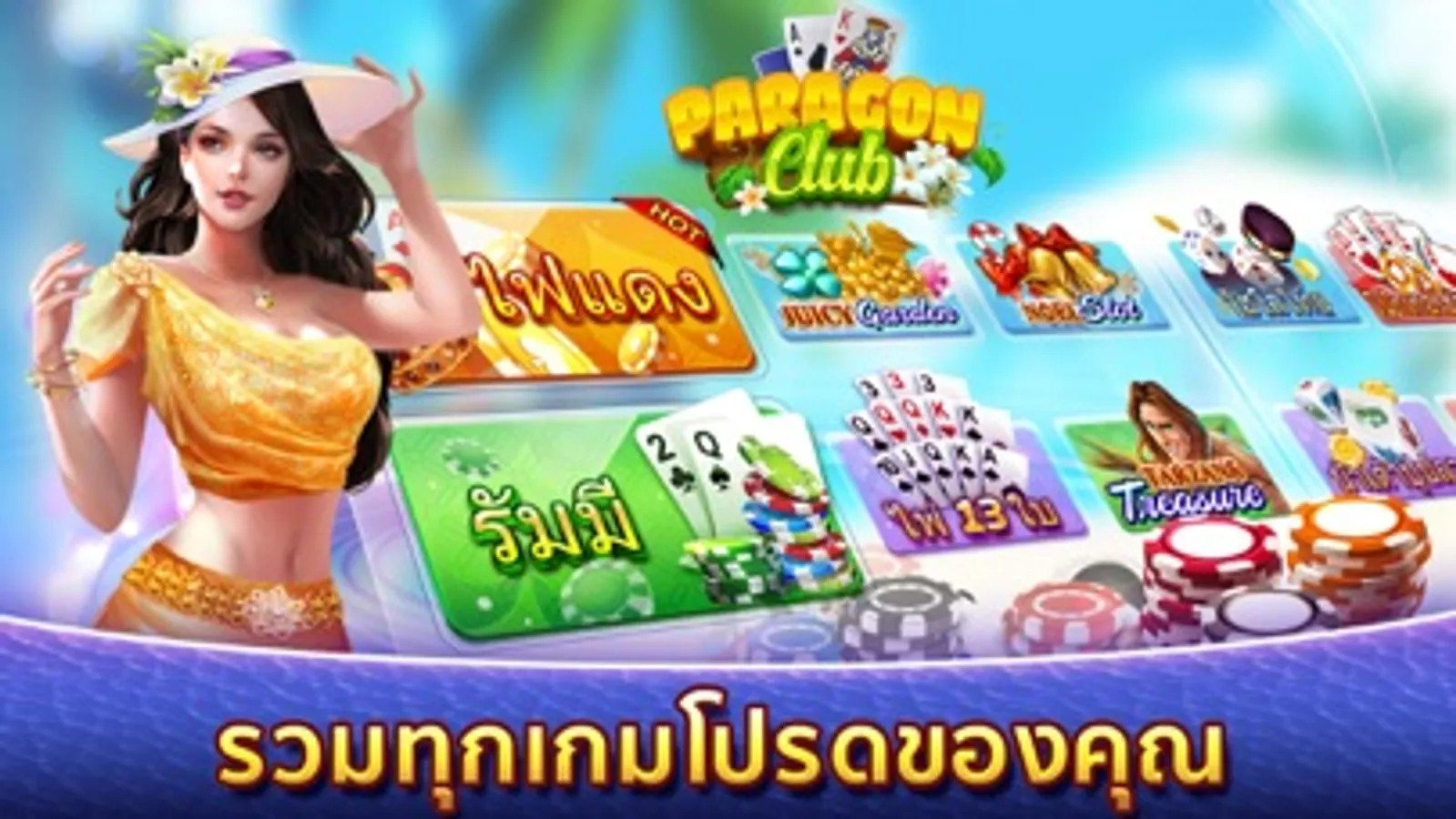 ยินดีต้อนรับสู่ Paragon Club เล่นเกมคาสิโนออนไลน์ที่ยอดนิยมที่สุดในประเทศไทยเช่น ไฮโล ดัมมี่ ป็อกเด้ง ไพ่แคง เก้าเก และเกมส์สล็อตต่างๆ