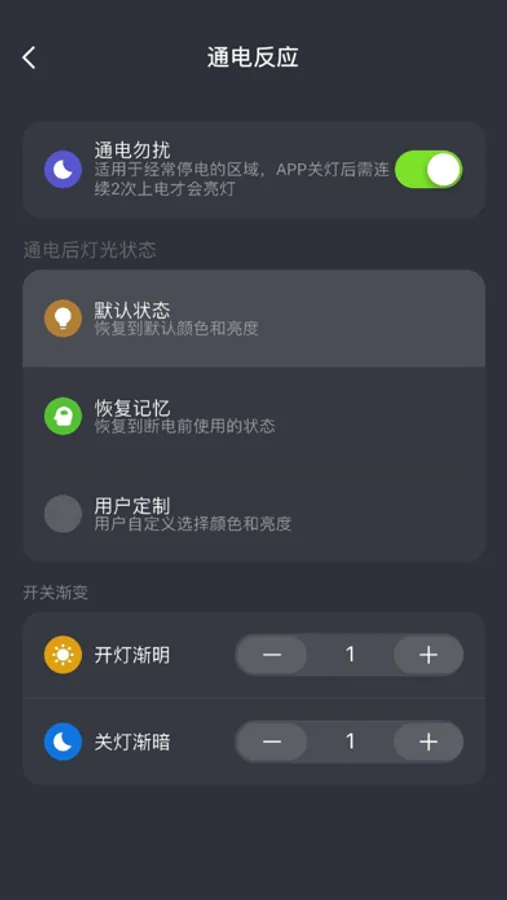 睿来智能APP为用户提供了多种个性化的智能场景设置,包括影院模式、回家模式、离家模式等,用户可以自由编辑设定场景,根据自身需求的使用场景进行操作,点击场景图标,智能场景就执行。能对灯具设置定时、远程、联动、场景等,例如定时开关灯具,远程关闭灯具,打开门锁时玄关灯联动开启,一键开启各种模式等。