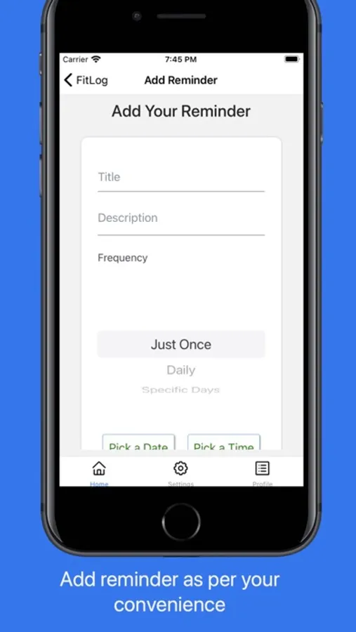 -Classy Interface for you to enter Custom Reminder whenever according to your needs.