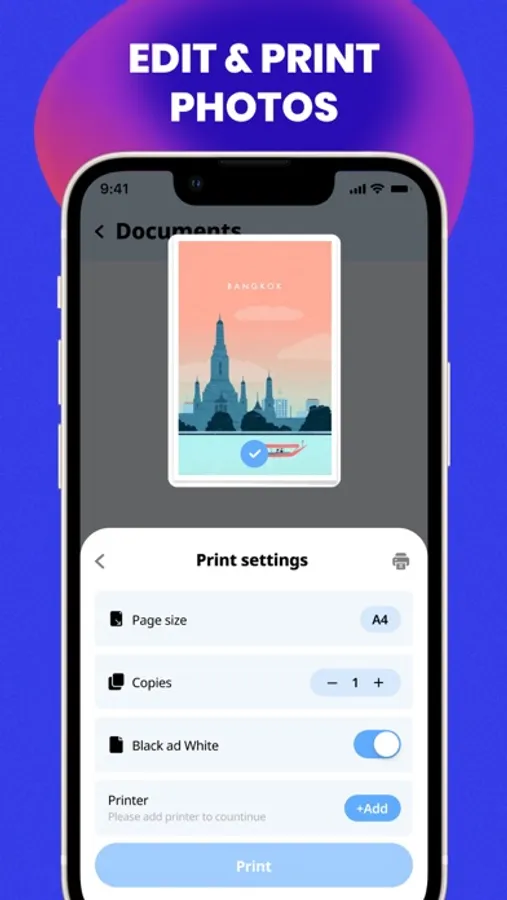 The Smart Printer lets you print your documents and photos in seconds. It works directly from your mobile device, so you don’t even need a computer.
