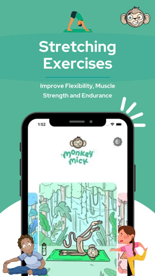 In our yoga app, Monkey Mick's Yoga Adventure, children embark on an exciting virtual journey where they learn various yoga poses, breathing exercises, and relaxation techniques. With colorful animations and kid-friendly instructions, kids can develop strength, flexibility, and body awareness while having a blast. Whether they are beginners or experienced yogis, our app caters to all levels and encourages a healthy and active lifestyle.