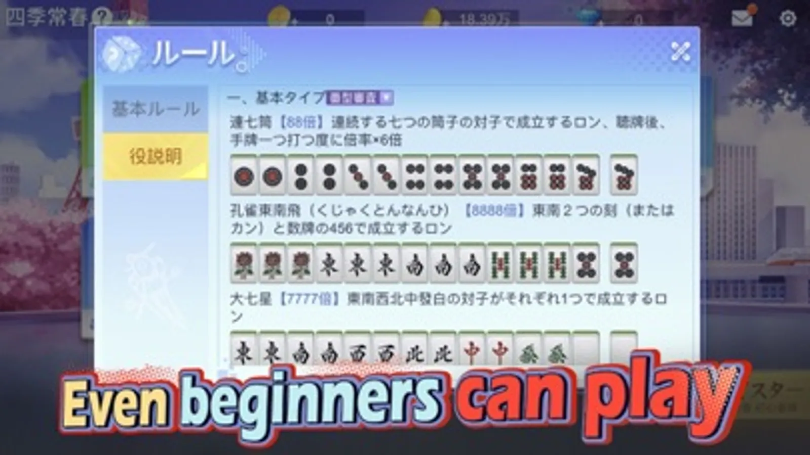 This is an online mahjong game that you can log in to get characters and play for fun. No matter when and where, you can fight with mahjong players everywhere freely. You can enjoy the fun of mahjong and sharpen your skills.