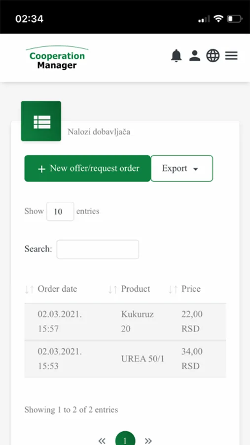 Our service allows you to communicate with producers via the application, which can also be used via a mobile phone, ie to exchange information and negotiate the purchase of goods.
