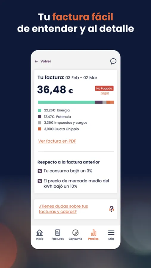 En nuestra app podrás conocer siempre el detalle de tus facturas de forma clara y sencilla.
