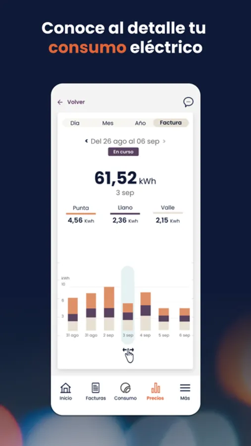 Tendrás varios reportes detallados de tus consumos históricos (año por año, mes a mes, día a día y hora por hora), el consumo del periodo de facturación actual e incluso cuánto llevas gastado. Así evitarás sorpresas a final de mes y podrás mejorar tus hábitos de consumo para ahorrar más.