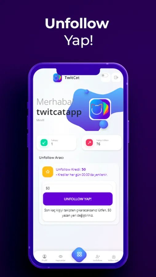 Hesabınızda sizin takip ettiğiniz ama sizi takip etmeyen hesapları bulan ve bunları tek bir tıkla takibi bırakabileceğiniz uygulamamız sayesinde sizi takip etmeyenleri bulmak hiç bu kadar kolay olmamıştı. Takipçi hilesi gibi uygulamaları kullanıp ardından sizin takibinizi bırakanları tespit edebileceğiniz yeni güncellememiz ile sizde takip etmeyenleri bulup onların takibini bırakabilirsiniz. Sizi takip eden ama sizin takip etmediklerinizi de TwitCat ile tespit edebilirsiniz. TwitCat takipçi analizinizi yapmanızda size yardımcı olur. Unf yapanları görme ile tek tek hesapları incelemenize gerek kalmayacak. Türkçe alt yapısı sayesinde Türkiye'nin en çok kullanılan sosyal medya unfollow ve analizleri uygulamasını sizde kullanabilirsiniz.