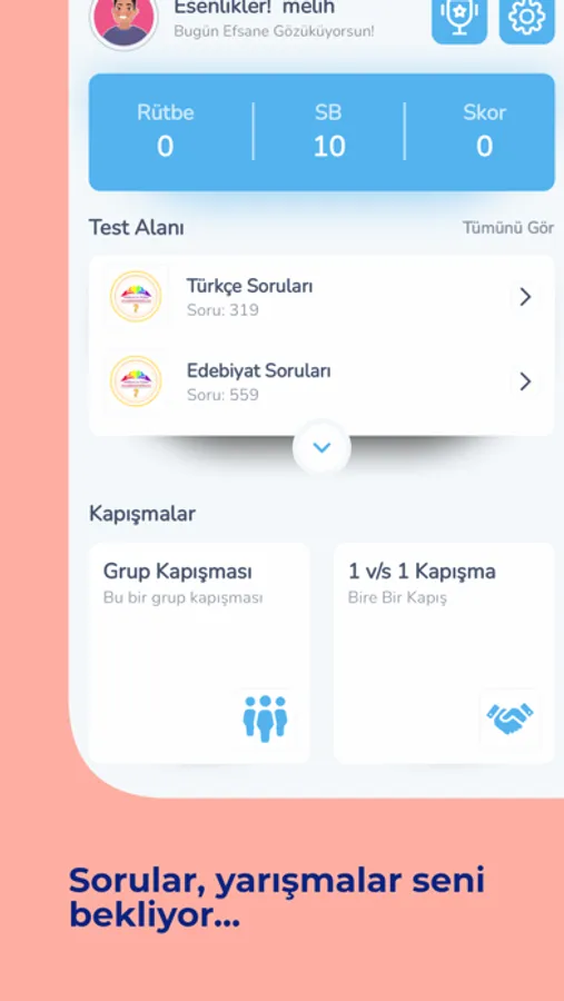 Aklınızdaki tüm soru uygulamalarını unutun. Bu ne tam anlamıyla bir yarışma ne de sıkıcı bir soru çözme uygulaması. İkisinin de tam ortasında birer dakikalık süreyle gittikçe artan seviye zorluğuyla Türkçe ve edebiyattaki tüm konulara yönelik bir soru çözümü uygulaması.