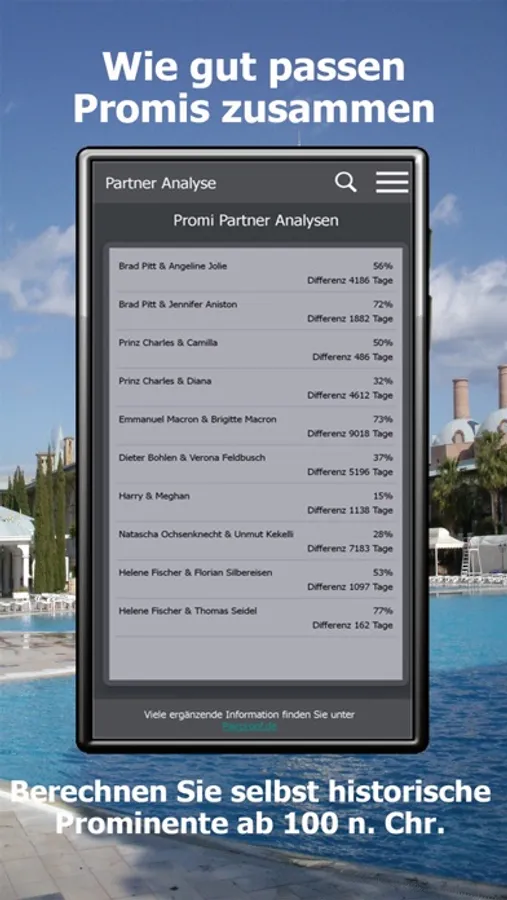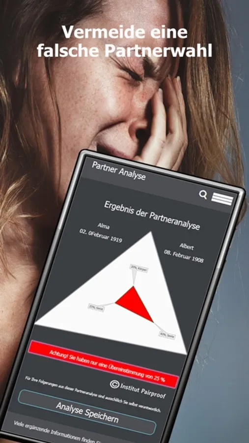 Zuerst und immer überprüfen Sie mit unserer App, ob Ihr Partner zu Ihnen passt. So vermeiden Sie Enttäuschungen.