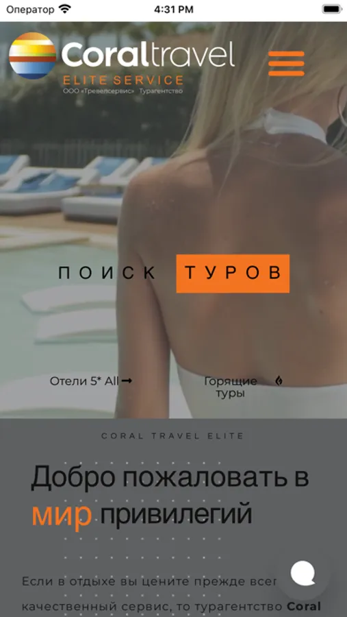 Приложение Турагентство Корал Тревел Элитный отдых - поиск туров в режиме онлайн, Горящие туры, Отели 5*. Бронирование туров в два клика и без регистрации. Цены в поиске туров актуальные, с учётом всех доплат!