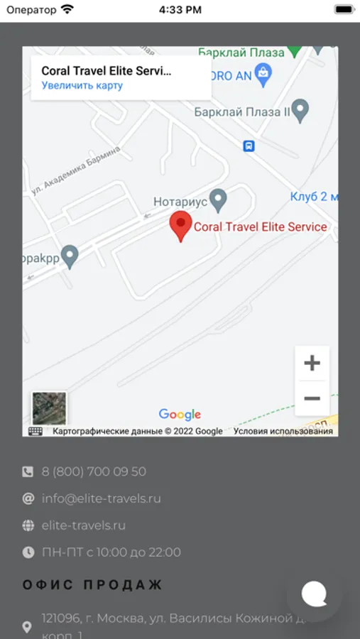 Приложение "Турагентство Coral Travel Elite Service" - ООО "Тревелсервис".