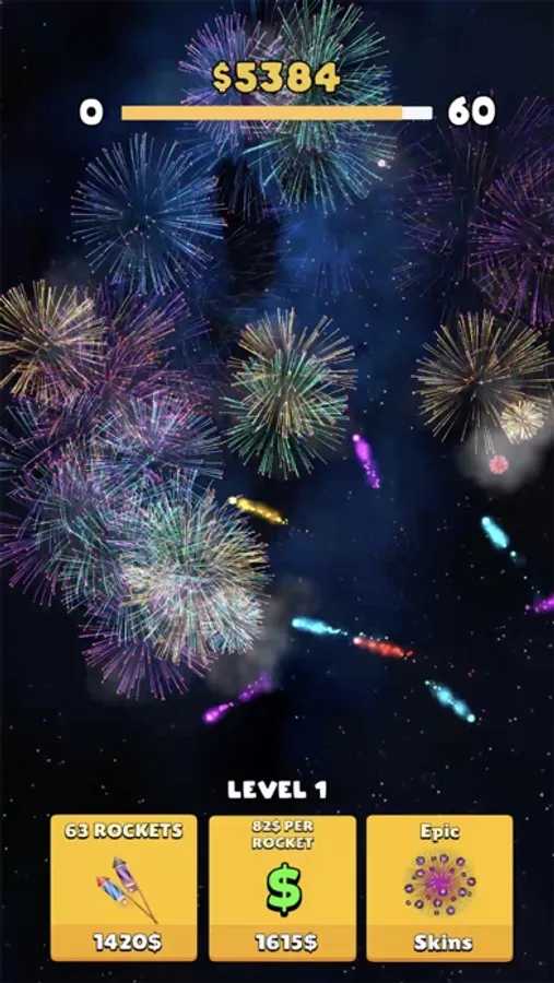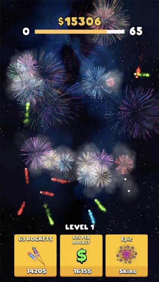 Pop as many fireworks as possible with just one tap! Level up as much as you can, unlock exclusive skins and enjoy mesmerizing chain reactions!