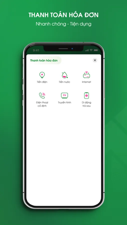 - Thanh toán hóa đơn, ví điện từ, nộp thuế, tiền chứng khoán ...