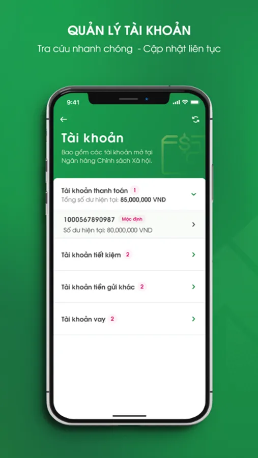 - Kiểm tra thông tin tài khoản thanh toán, tài khoản tiền gửi, tiền vay; Tra cứu lịch sử giao dịch