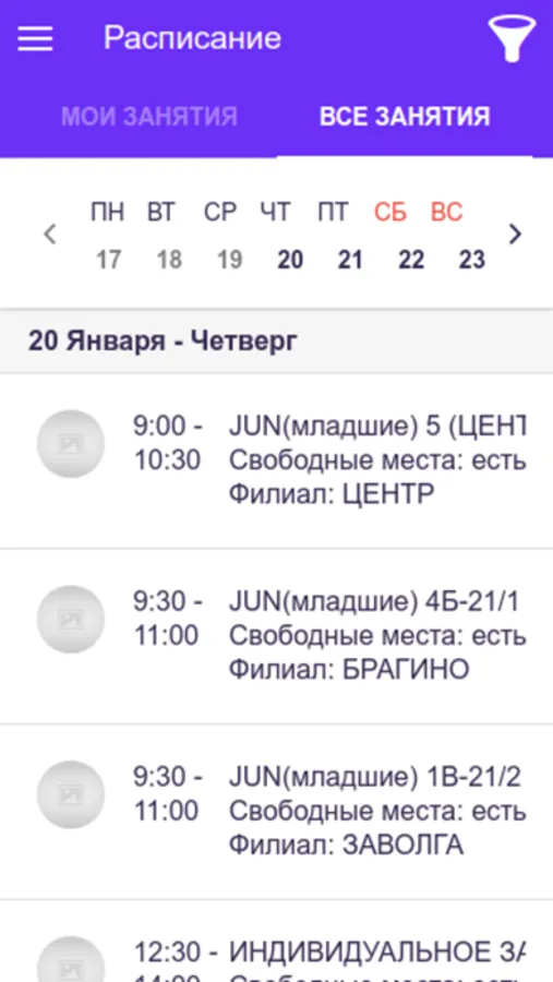 - Расписание занятий и их тематику;