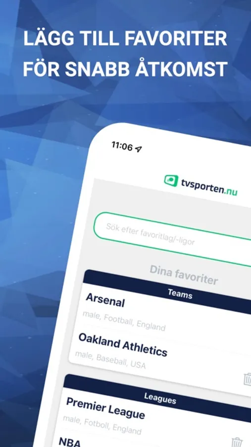 - Lägg till favoriter för att snabbt kunna filtrera tablån på valda lag och ligor