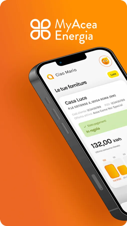 Scarica gratuitamente l'App MyAcea Energia, dedicata ai clienti con codice fiscale. Gestisci in completa autonomia le tue forniture Luce e Gas in modo semplice e veloce: controlli le tue bollette, comunichi l'autolettura, puoi attivare diversi servizi come Bolletta web, domiciliazione e scoprire le novità del programma fedeltà Acea con Te.