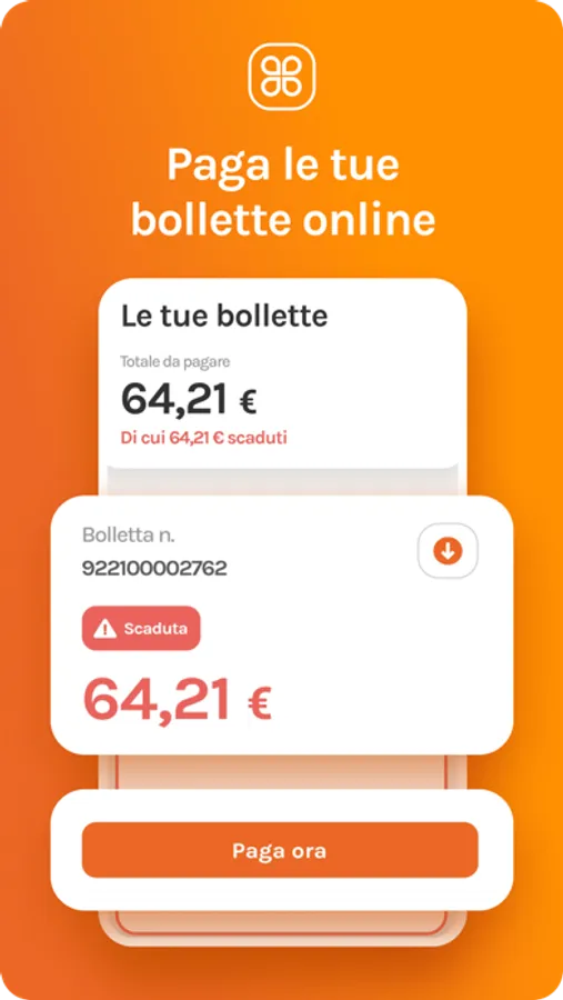 • Fatture e pagamenti: per avere sempre sotto controllo le tue bollette, conoscere il loro stato e poter pagare quelle in scadenza tramite carta di credito