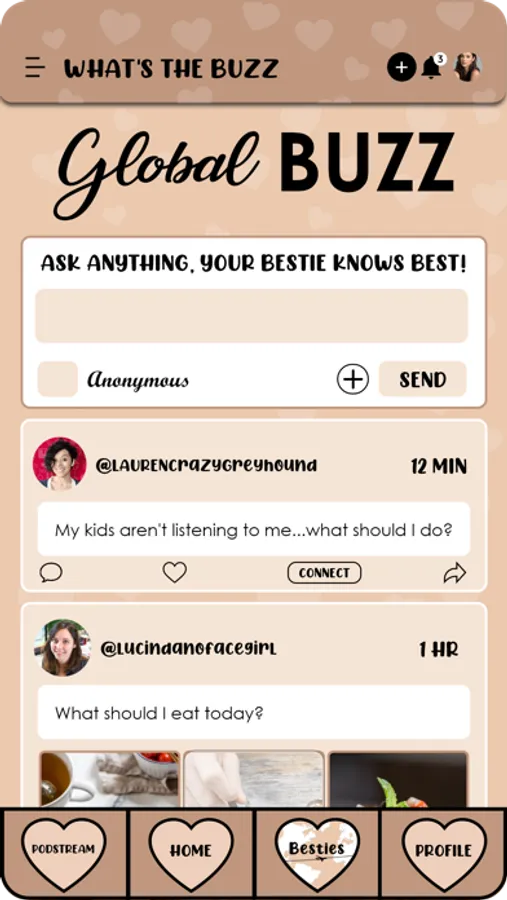 The Besties app is the first social media platform catered to women of all backgrounds, where women can connect and voice their opinions in a safe and uplifting environment.